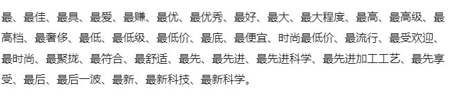 近日,陸續(xù)收到部分企業(yè)、單位因為網(wǎng)站、微信公眾號、畫冊、廣告牌等因違規(guī)使用極限用語收到工商罰單的報料,新一輪的極限用語為主的查處或早已走進各個行業(yè),F(xiàn)將新廣告法禁止使用的極限用語匯總,有涉嫌違規(guī)的企業(yè)需盡快處理,避免受罰。