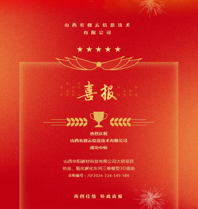 熱烈慶祝山西宏微云信息技術(shù)有限公司成功中標(biāo)山西華陽碳材科技有限公司大同項目紡絲、氧化碳化車間三維模型3D渲染采購編號:J…