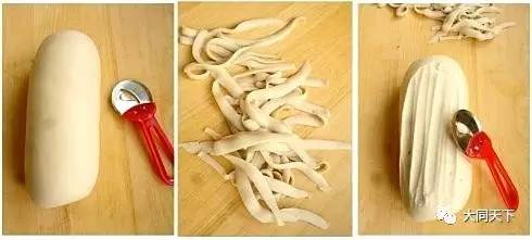 當大同人身處異鄉(xiāng)時,他們無法像別的地方人一樣隨處吃到所謂的家鄉(xiāng)味。不過他們本身個個就是做面的高手,最常做的恐怕就是一碗不挑嘴巴的刀削面。有的人喜歡把面片切的厚厚的,嚼勁十足。有的人則喜歡切的薄薄的,吃的時候把面片順著熱湯一溜煙送進嗓子里,痛快。