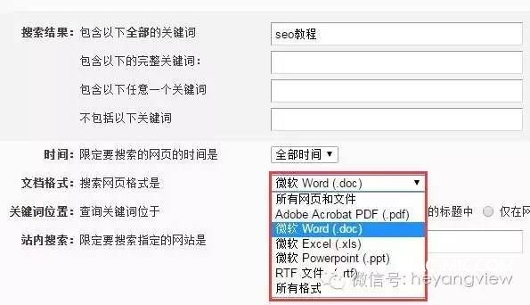 有時候我們經(jīng)常會在網(wǎng)上找一些專業(yè)的文檔資料,如word,ppt,pdf等,這個時候我們也可以借助高級搜索工具快速實現(xiàn),比如我們想找seo教程的pdf文檔,見圖: