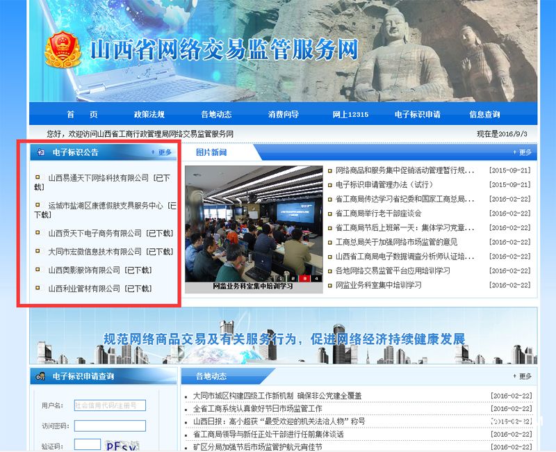 太原新聞網(wǎng)訊 10月12日,山西省工商局發(fā)布消息,《網(wǎng)絡(luò)經(jīng)營者電子標(biāo)識申請管理辦法(試行)》已于10月1日實施,經(jīng)營性網(wǎng)站須在醒目位置放置電子標(biāo)識,使消費(fèi)者能辨識網(wǎng)絡(luò)經(jīng)營者的真實身份。