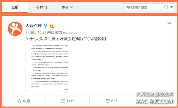 在7月9日的聲明中,大眾點(diǎn)評(píng)稱,大眾點(diǎn)評(píng)打造好友關(guān)系鏈類產(chǎn)品功能的初衷,是希望有分享意愿的用戶能夠通過大眾點(diǎn)評(píng)分享在生活中獲得的美好體驗(yàn),“但我們也發(fā)現(xiàn)這類功能設(shè)計(jì)在用戶體驗(yàn)方面存在考慮不周的地方,這與我們的初衷背道而馳。”
